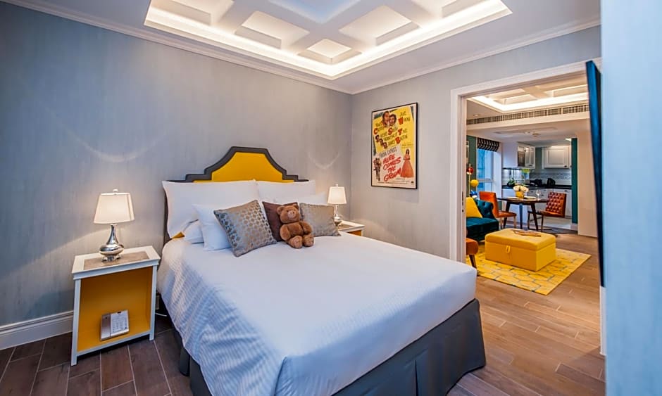 The 70-square-yard, elegantly furnished suite atop Hollywood Road and is lavishly embellished with Hollywood Regency elements. There is a spacious living room, a secluded bedroom with extra large linen closet, well-equipped built-in kitchenette, and twin-basin bathroom with an ethereal rain shower and body jets.